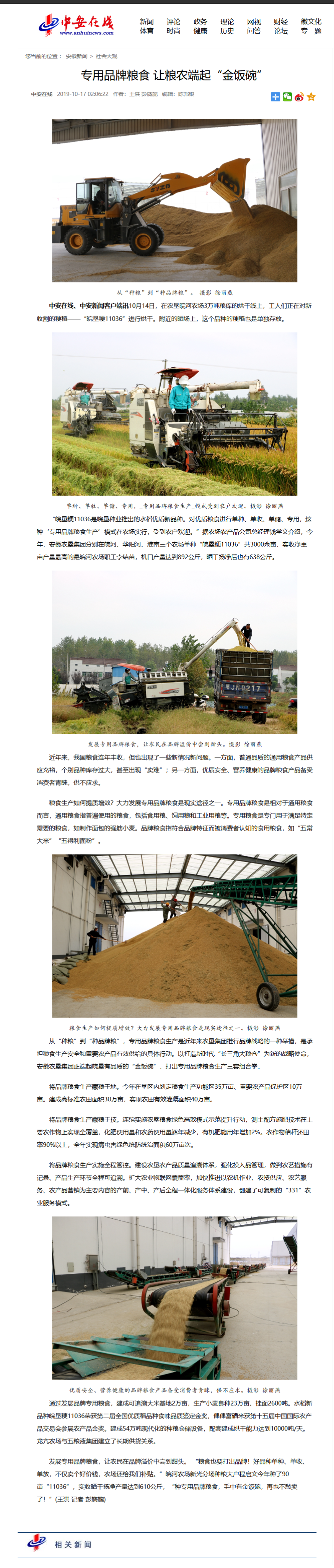 中安在线:专用品牌粮食生产让粮农端起“金饭碗”