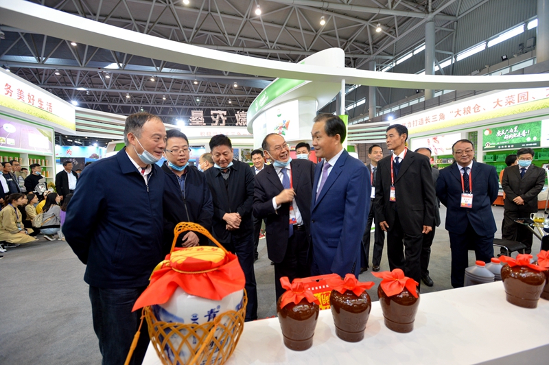 10月16日上午,安徽名优农产品暨农业产业化交易会开幕式结束后,副省长张曙光来到安徽农垦展馆巡视。农垦集团党委书记、董事长詹先豪、副总经理董建平等陪同。