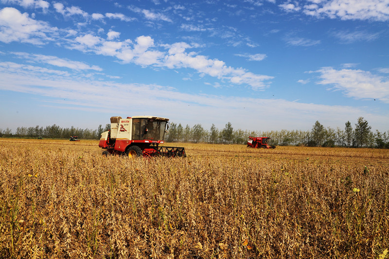 经过连续4天的机收会战,到10月3日下午5:30,潘村湖农场公司1.4万余亩达到收获条件的大豆全部收割完毕。根据实收情况测算,均产超过300斤,在大旱之年取得了较好的收成。(杨登宏 摄 审稿:安继凤)