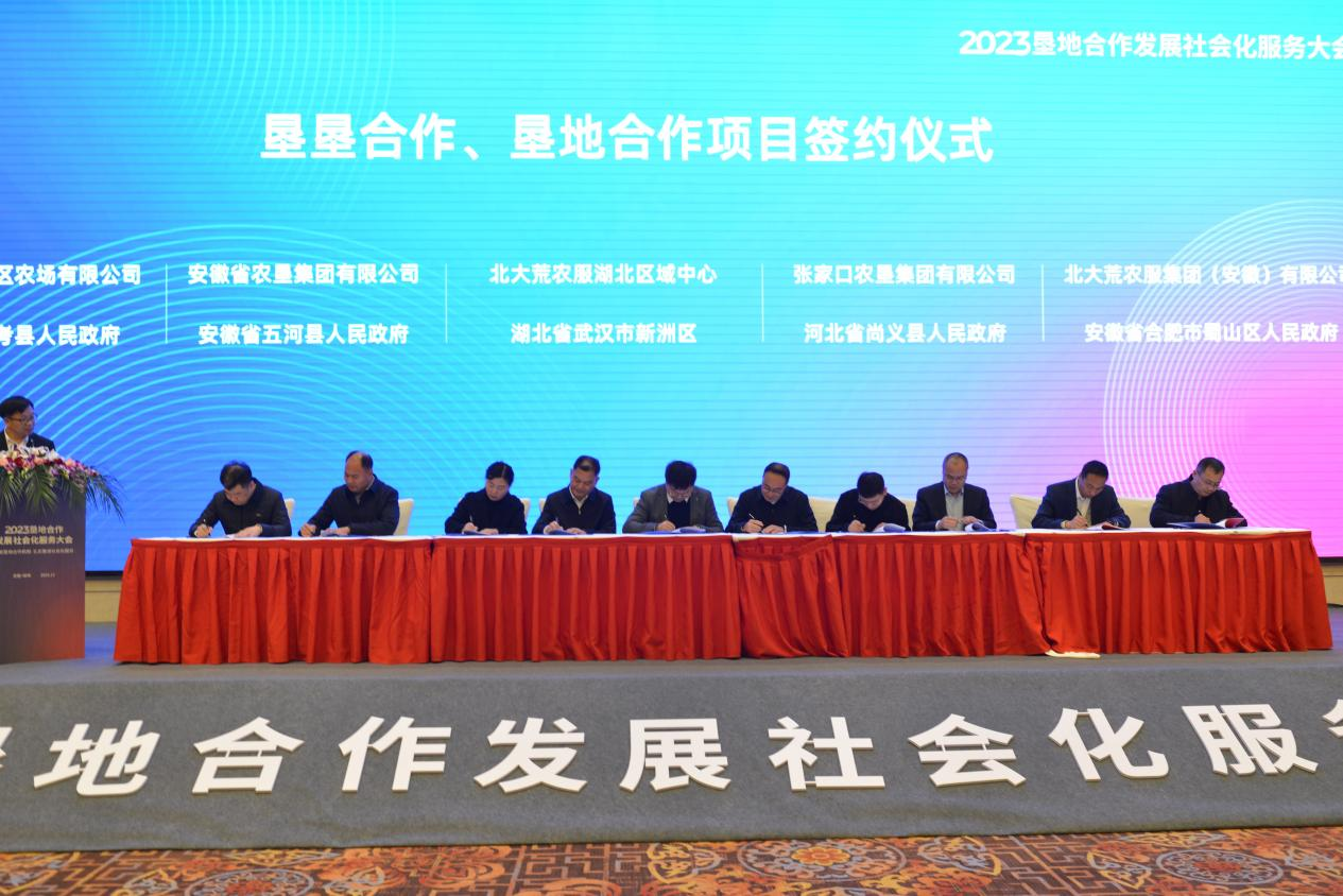 12月6—7日,农业农村部在安徽蚌埠组织召开农垦发展社会化服务现场推进会。会议与全国农业企业发展联盟、蚌埠市人民政府主办的垦地合作发展社会化服务大会联合召开,邀请学者专家、垦地代表等各界人士,共商垦地合作发展社会化服务大计,深入推进“农垦社会化服务+地方”行动。安徽省农垦集团党委副书记、总经理张其广,总农艺师姚礼发参加会议。
