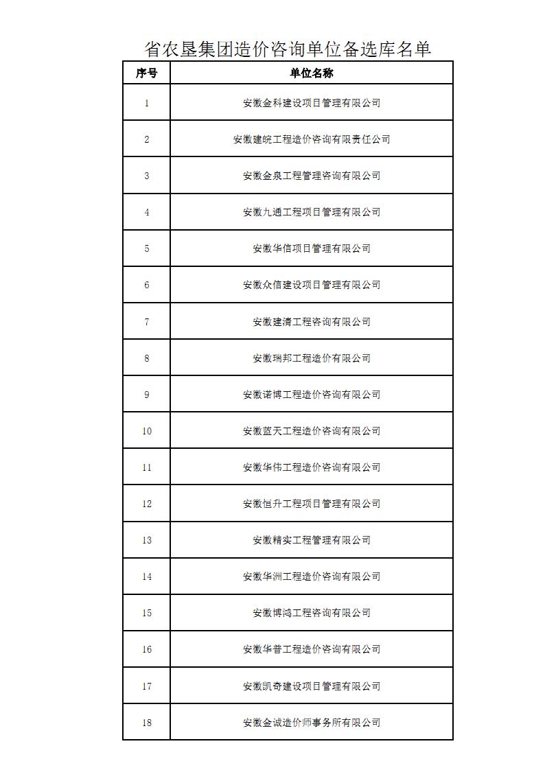 省农垦集团关于公布造价咨询单位备选库名单的公告