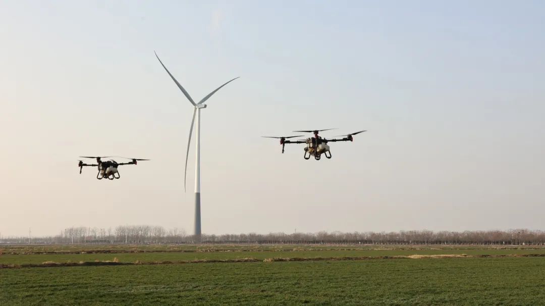 农场植保无人机操作手丁云峰说:“只要给植保无人机划定好作业区域和轨迹,及时添加肥料、更换电池,就会不间断地精准作业,不分白天黑夜。”