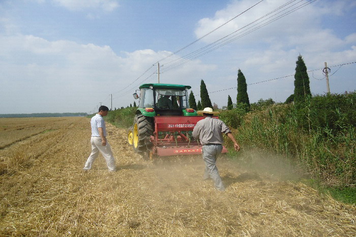 潘村湖、方邱湖两场交流秸秆粉碎播种一条龙作业经验