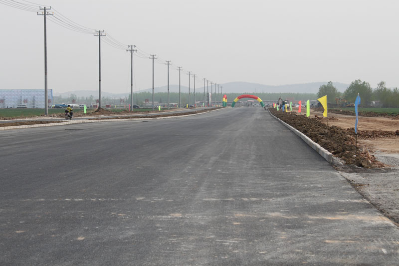 近日,笔者来到位于安徽农垦淮南农场西部的淮南东部工业园区,这里一派繁忙的景象,在园区吉兴路施工现场,挖土机、压路机等大型施工机械在紧张施工中,已完工的道路平坦宽阔,环卫工人们正在路旁绿化带中铺设草坪,栽植松树、花卉等。