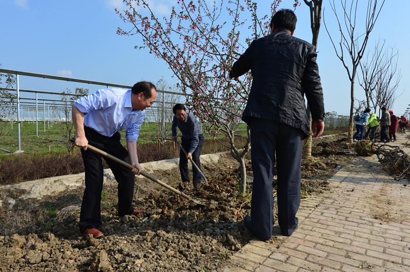 植树现场,大家3人一组,按技术要领挥锹挖坑、扶树培土,沿园区主干道两侧栽植了数十株垂丝海棠等树木,为春意盎然的草莓文化园增添了一抹靓丽风景。植树结束后,大家参观草莓园并进行了自费采摘体验。(朱邦勇)
