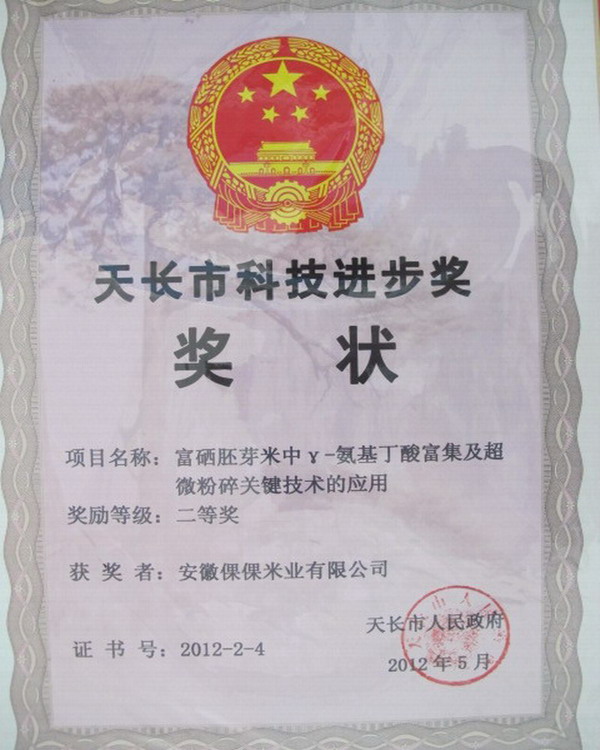 此次获得天长市科技进步奖的企业共21家,其中,一等奖三个,二等奖8个,三等奖10个,涉农企业仅占4个。倮倮米业科技项目“富硒胚芽米中γ-氨基丁酸富集及超微粉碎关键技术应用”荣获二等奖,滁州市委常委、天长市委书记杨东坡为倮倮米业颁发了获奖证书,勉励公司再创佳绩。(赵家平)