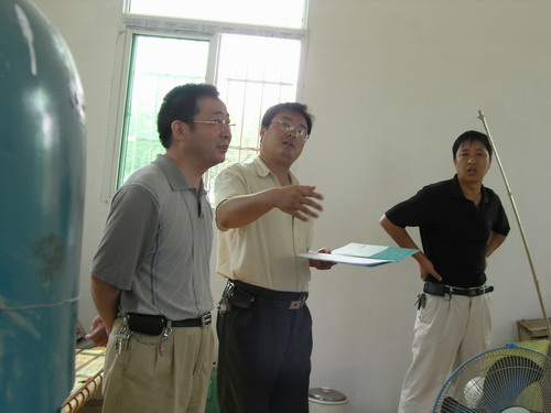 目前,两站的围墙、管理房等增项工程正在抓紧施工,预计本月底全面竣工。图为场有关人员对电站进行检查验收的情景。(文/李永昌 图/杨登宏)