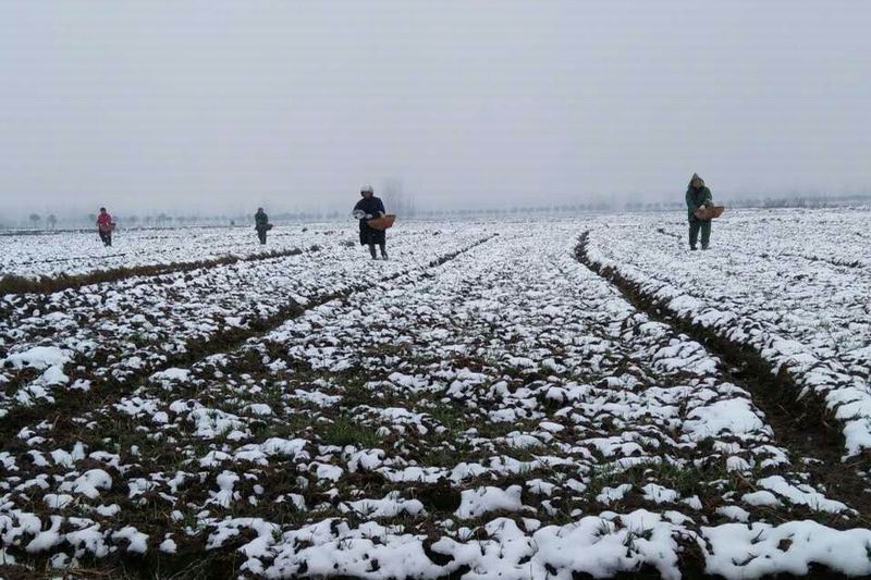 大圹圩农场人勤春早 踏雪追肥