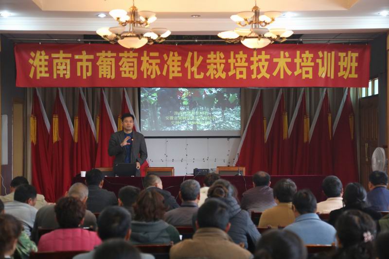集训中,淮南市果树站站长史树仁以“巨峰”品种为例,主要讲授了葡萄标准化栽培技术及发展前景,并结合去冬雪灾冻害造成部分葡萄至今不萌芽的问题,为种植户给出了解决方案。安徽元贞葡萄帮总经理丁树洪结合丰富的生产管理经验,着重讲解了葡萄施肥、病虫害防治等关键技术要点。课后,两位专家带领学员走进农场葡萄园,现场进行了技术指导和释疑解惑。