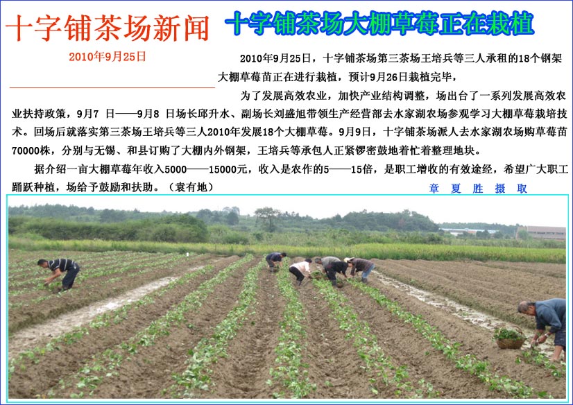 十字铺茶场大棚草莓栽植进行时
