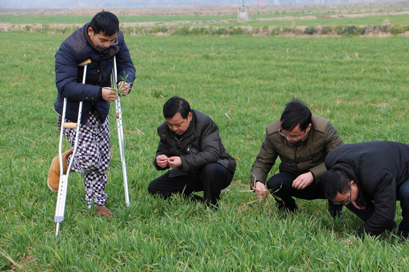 大圹圩农场农技骨干把脉小麦春管