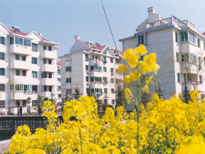 1998、1999连续两年特大洪涝灾害,曾经使安徽农垦 华阳河农场家毁人心散,经济几乎到了崩溃边缘。近年 来,在各级政府的关怀支持下,华阳河农场干部职工咬 紧牙关,团结拼搏,同时抓住移民建镇的机遇,建设了 一个崭新的华阳河农场。图为职工住宅区一角。
